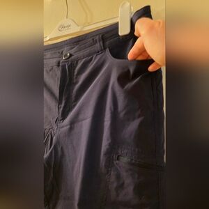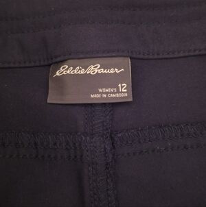 Eddie Bauer Ladies Navy Rainer Sports Tech Capris (Size 12). Nylon stretch hiking pants with pockets and UPF 50+ protection. Perfect for the great outdoors.