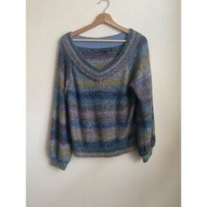 Banana Republic Rainbow Ombre Sequin Sweater Womens Large V Neck