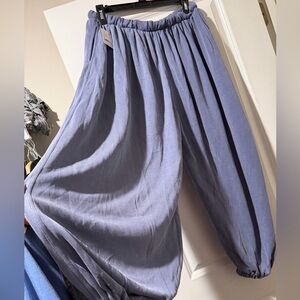 Soft lavender pants with side detailing. Ideal for relaxed outings.