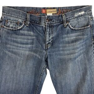 Vintage Y2K Old Navy Ultra Low Rise Bootcut Embroidered Jeans. 100% Cotton. Blue Wash with fade and light distressing. Heavy embroidering on back waist.