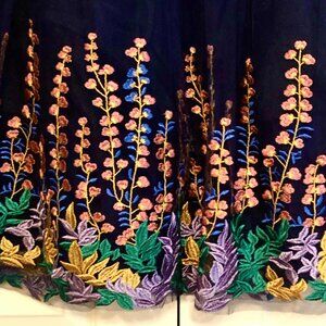 NWT MODCLOTH GEODE Sapphire Tulle Dress Embroidered Floral Appliqué Tea Length L