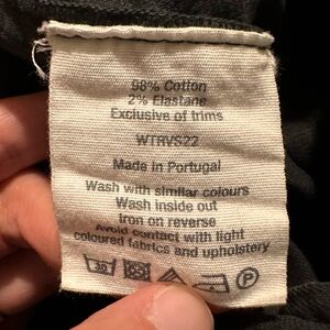 Machine wash 30ºC. 98% cotton, 2% elastane.