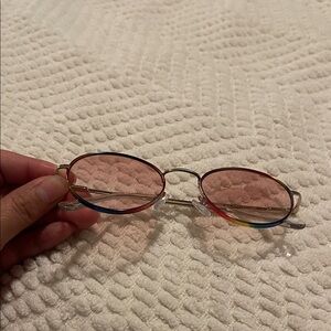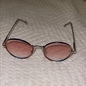 Stylish round sunglasses with a pink to blue gradient. Perfect for adding flair to any outfit.