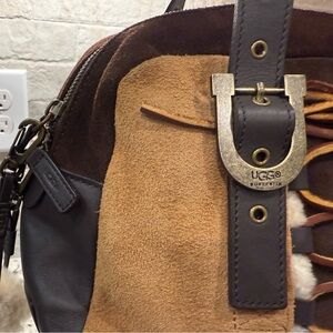 UGG NWT Brown & Tan Leather & Suede Bowler Shoulder Bag