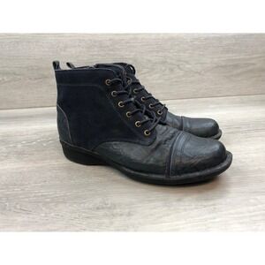 Step into versatile style and comfort with these Clarks Collection ankle boots. Crafted with a sophisticated blend of smooth black leather and soft suede, these boots offer a chic and modern aesthetic. The cap-toe detail adds a touch of classic design, while the lace-up front ensures a secure and personalized fit. A convenient side zipper allows for easy on and off. These boots are perfect for navigating city streets, enjoying a casual weekend outing, or adding a polished finish to your everyday look.