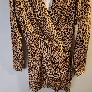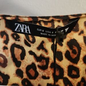 ZARA leopard print wrap mini dress with a flattering V neckline and long sleeves. Soft, silky feel with a tailored waist that creates a beautiful silhouette. Classic animal print that works for day to night, casual outings, dinners, or dressed up with heels. Lightweight and comfortable with elegant button details at the waist and cuffs.