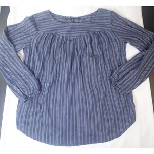 Lee Shape Illusions Blue White Stripe Blouse M Long Sleeve Boho Casual Top