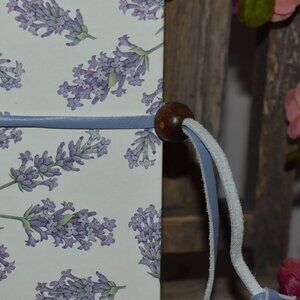 This journal book features a durable hardcover with a lavender floral print and a periwinkle blue spine