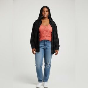 This new peach lace cami is going to be your little pop of color under your jackets, button downs, or cardigans. Sheer lace in a women’s size XL 100% nylon
