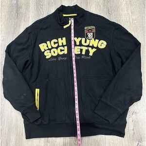 Richyung Society Men's 2XL Black Yellow Full Zip Y2K Oversized Sweater Jacket