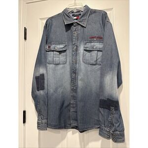 Tommy Hilfiger Shirt Men's XXL Denim Long Sleeve Button Down Blue Jean Vintage