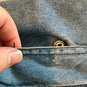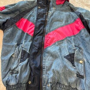 Vintage Cisco 1990's denim jacket. The jacket says a women's small but I think it fits more like a medium. This jacket is 100% cotton. There is one flaw with the pocket on the left as shown in the photo.