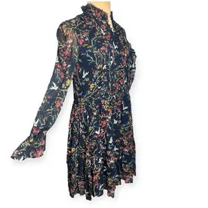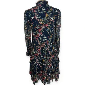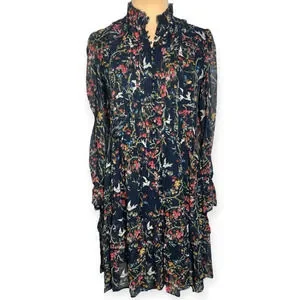 The Kooples Blue Bird Silk Chiffon Dress navy green yellow pink red white Medium