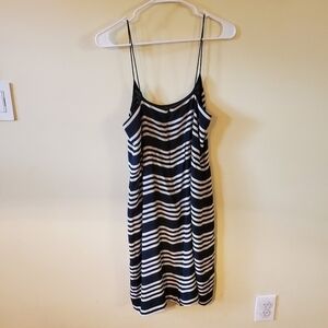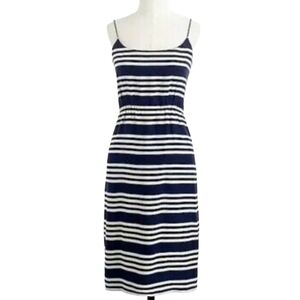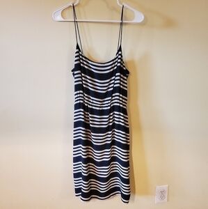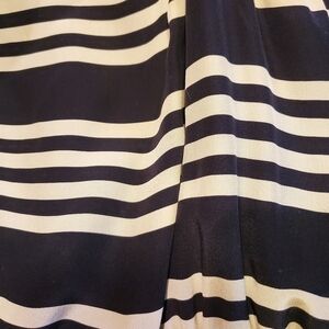 Great light flowy summery silk dress! Has a nautical vibe with navy stripes.
