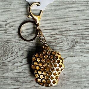 Yummy cupcake charm with gold hardware and a sturdy metal clasp and key ring.