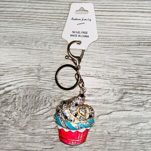 🧁 Cupcake Rainbow Rhinestone Charm Keychain