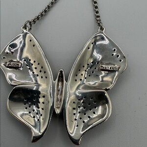 Design: The necklace features a large, figural butterfly pendant with detailed, textured wings. It usually hangs from a rolo or rope-style chain.