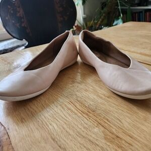 These Clarks Artisan ballet flats are in excellent pre-owned condition. They have light blush pink leather uppers with a comfortable sole. Womens size 7.