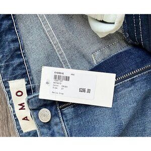 The AMO Denim Chloe Crop Pant in Dearest size 27 is a high-rise, straight ankle jean designed for women. Made from a blend of elastane and cotton, these jeans feature a zip and button closure, a waist size of 27 inches, and a regular fit. The cropped style offers a modern twist on a classic wardrobe staple, perfect for adding a trendy touch to any outfit. Made in the United States by AMO, these jeans combine quality craftsmanship with a stylish design, making them a versatile and fashionable choice for any woman's closet.