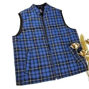 RALPH LAUREN Chaps Men's L Blue Plaid Puffer Vest