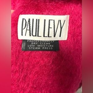 Paul Levy fuchsia pink mohair-style coat. Double-breasted with oversized fit, wide lapels, patch pockets, and bold retro statement look. Very goodcondition, minor vintage wear.