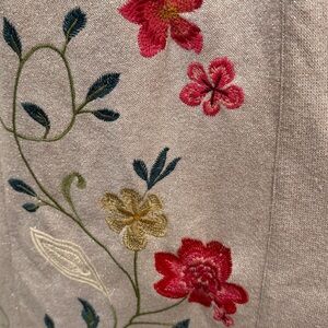 Elevate your style with this elegant pink / blush/ beige cardigan sweater, featuring beautiful floral embroidery and light silver metallic shimmer.