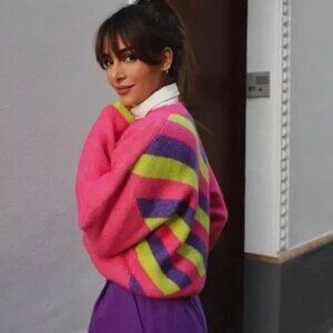 ZARA Pink Snail Jacquard Sweater Brand new with tags Round neck long sleeve sweater. Contrasting jacquard detail. Colors: Neon Pink, Purple & Lime Green