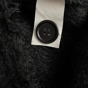 Chic black cardigan with a textured finish. Features button details. Ideal for layering.