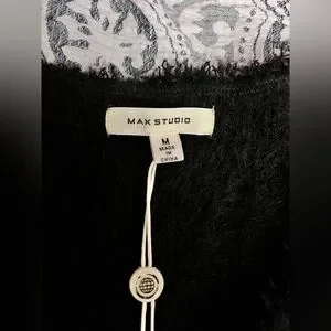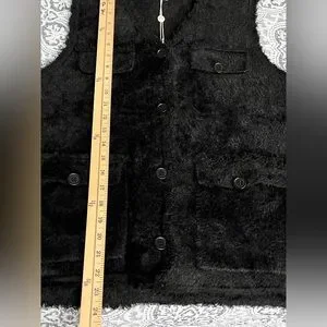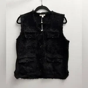 Max Studio Fur Black Vest With Pockets, Style 2707620, Size Medium NWT