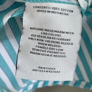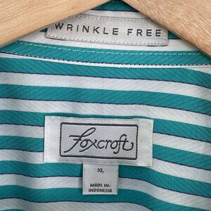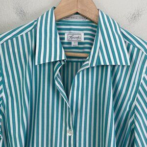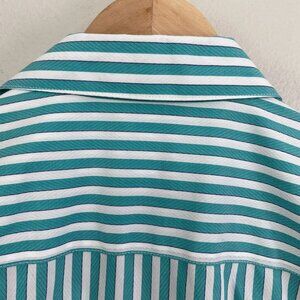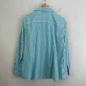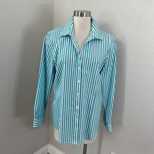Foxcroft Womens XL Wrinkle Free Turquoise White Striped Button Up Shirt Blouse
