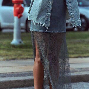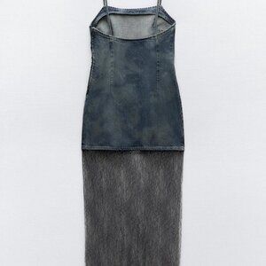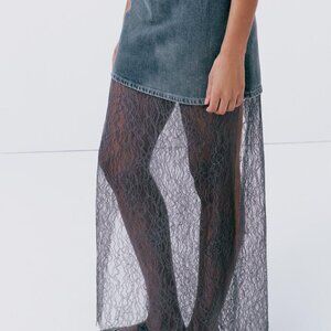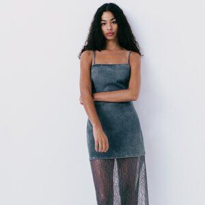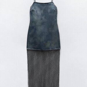 Zara LACE TRIM DENIM DRESS Size M NEW WITH TAG!
