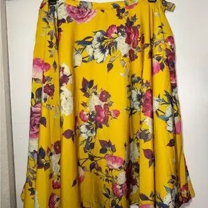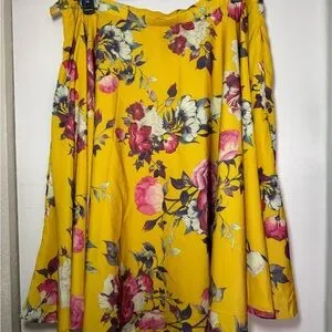 EUC ModCloth Gold Pink/White Floral Full Skirt Plus Size 1X 14/16