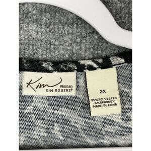 Kim Rogers Open Cardigan Sz 2X Animal Print Black White Sinched Back Long Sleeve