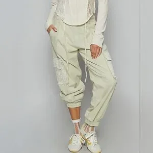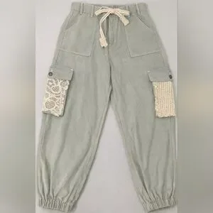 POL Crochet Overlayed Sage Green Cargo Jogger Small - New Without Tags