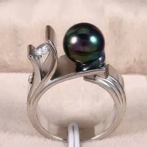 This exquisite ring features a stunning green pearl set in a sleek silver band. Perfect for adding a touch of elegance to any outfit.