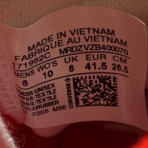 Converse Chuck Taylor All Star Not A Chuck Red Shoes 171962C Men’s Sz 10