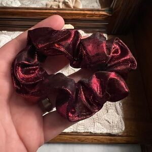 SET OF 5 Classic Solid Colors Hair Scrunchies White Eyelet, Metallic Red, Denim