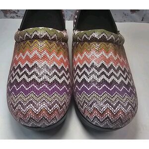 Cherokee Angelique Leather Clogs Chevron Zig Zag Nurse Comfort Size Est 9.5M