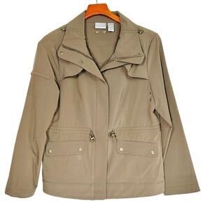 zenergy by chicos, chicos jacket, utility jacket women, anorak jacket women, stretch jacket, lightweight jacket women, travel jacket women, casual utility jacket, neutral jacket women, chicos size 1