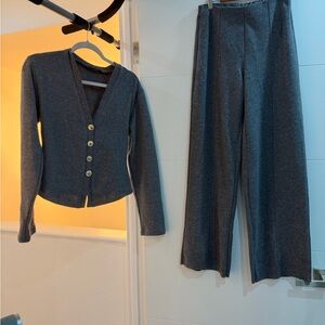 Elegant gray wide leg pants with matching cardigan. Perfect for stylish comfort.the top is M and the pants are small brand New