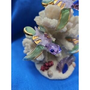 Art Glass Hand Blown 3 Sea Turtles Ocean Coral Scene Gold Gilt Marine Coastal 5"