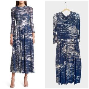 NEW TED BAKER Iggiey Metallic Burnout Midi Dress in Navy, Size 10/M