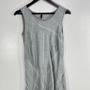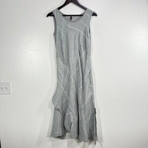CINZIA Made in Italy Gray Linen Cotton Blend Asymmetrical Midi Dress Size M