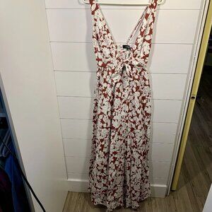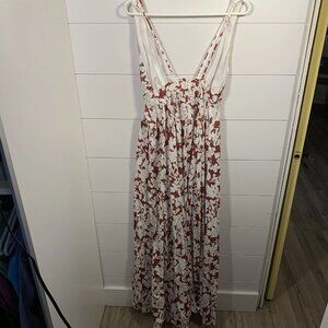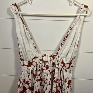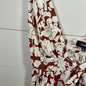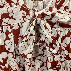 Aakaa Floral Maxi Dress Women Sz S Reddish Brown & White Fall Boho