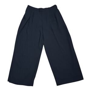 J Crew 365 Crepe High Rise Pleated Wide Leg Trouser Pant in a size 6. High waisted with elastic pull on waistband. Pleated. Two front pockets. 100% polyester. Measures approximately 15” flat lay waist, 12” rise, 22” inseam. In great condition.