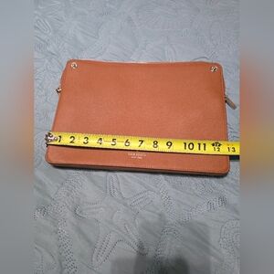 Elegant brown leather pouch by Kate Spade. Features metallic hardware perfect for laptop,Ipad,important documents. dimensions shown. new without tags