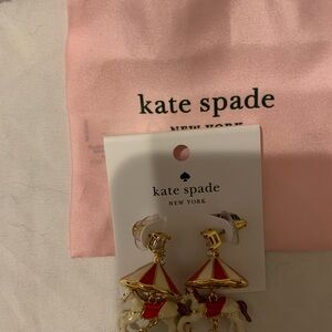 Whimsical horse carousel earrings by Kate Spade. Features gold and red accents. Adds charm to any look. NWT and comes with the Kate spade drawstring bag.