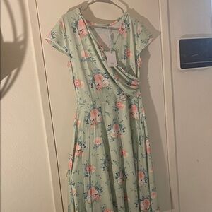 Step out in style with this chic mint floral midi dress. Its elegant design and soft colors make it perfect for any occasion. The floral print is such a feminine touch and the fabric is soft and dreamy. You’ll find yourself grabbing this dress time after time. It’s new with tags in a women’s size M.