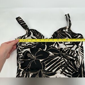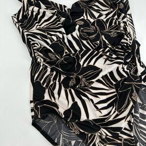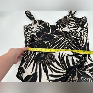Miraclesuit Sanibel Swimsuit Tropical Black/White/Gold Sz 16 Palm Hibiscus.