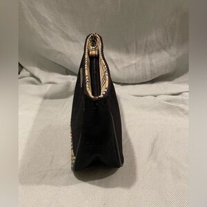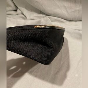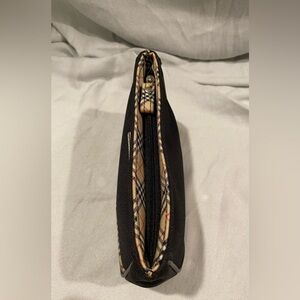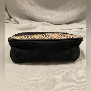 Small Burberry pouch with signature plaid pattern. Black exterior with beige plaid trim. Has minor wear on the zipper and inside.